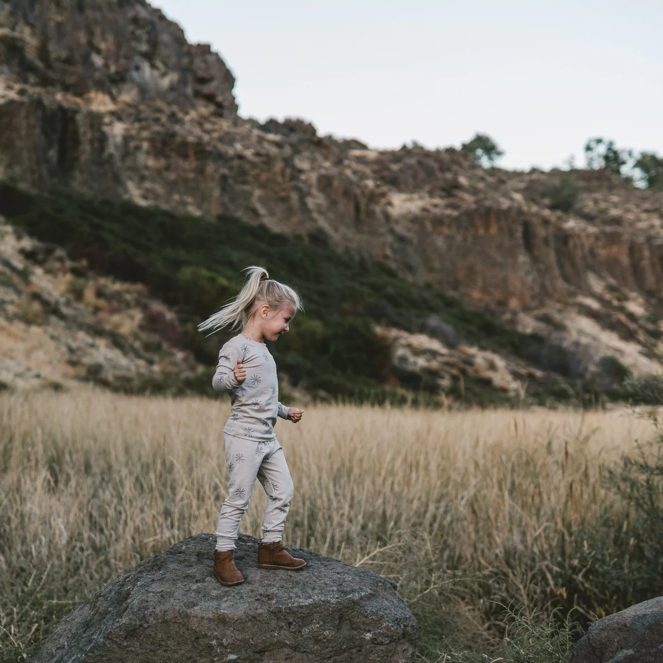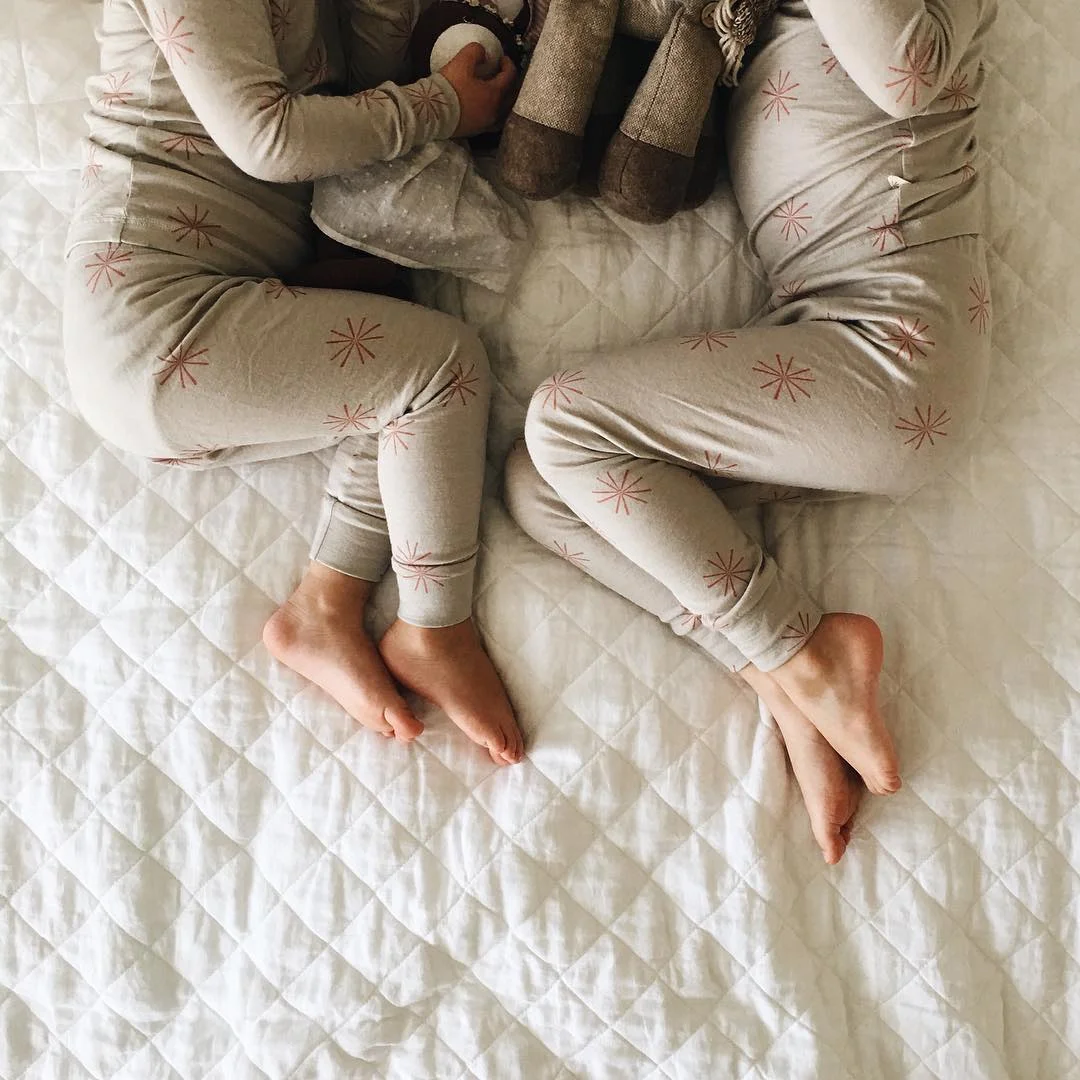 We've heard our windmill pattern looks like stars, snowflakes, and magic. Whatever you make of them, they are the perfect festive and cozy jammie to wake up in on Christmas morning. Plus, you can still wear them every other day of the year. Again, we love versatility :).
